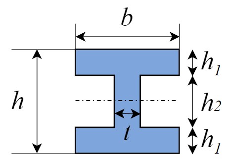 | H形 | ![]() | $$I=\frac{bh^3-h_2^3(b-t)}{12}$$ |
